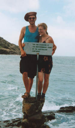 So, to cut a long story short ... I was thumbing around Australia when I got phone call out the blue from a girl I'd stayed with in Tasmania earlier in the trip. That girl was Makale'a and when on an impulse I asked if she felt like joining me for the final leg of my Australian trip (Queensland), she agreed. So we hitched together to the very tip of Cape York (You are standing at the northernmost point on the Australian continent) and back. |